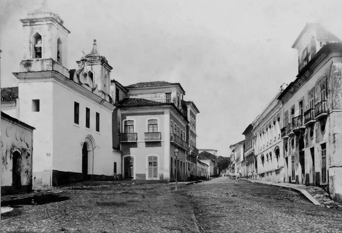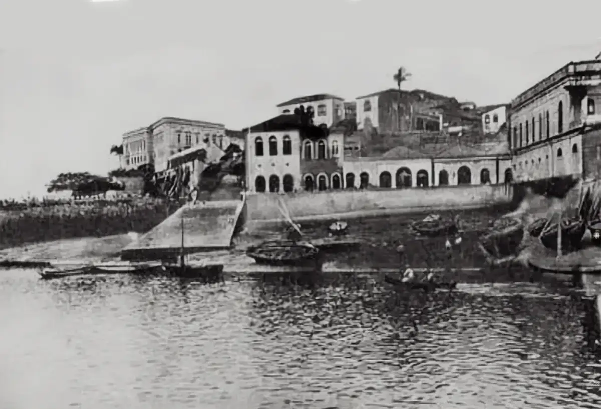 São Luís do Maranhão do século XIX, nos tempos de Maria Firmina dos Reis. Nas fotos da época foram registrados a Rua do Egito e a antiga rampa de desembarque, hoje desaparecida em função de contínuos aterros. À direita, o prédio do Tesouro. À esquerda o Palácio do Governo, aparecendo uma de suas palmeiras imperiais.